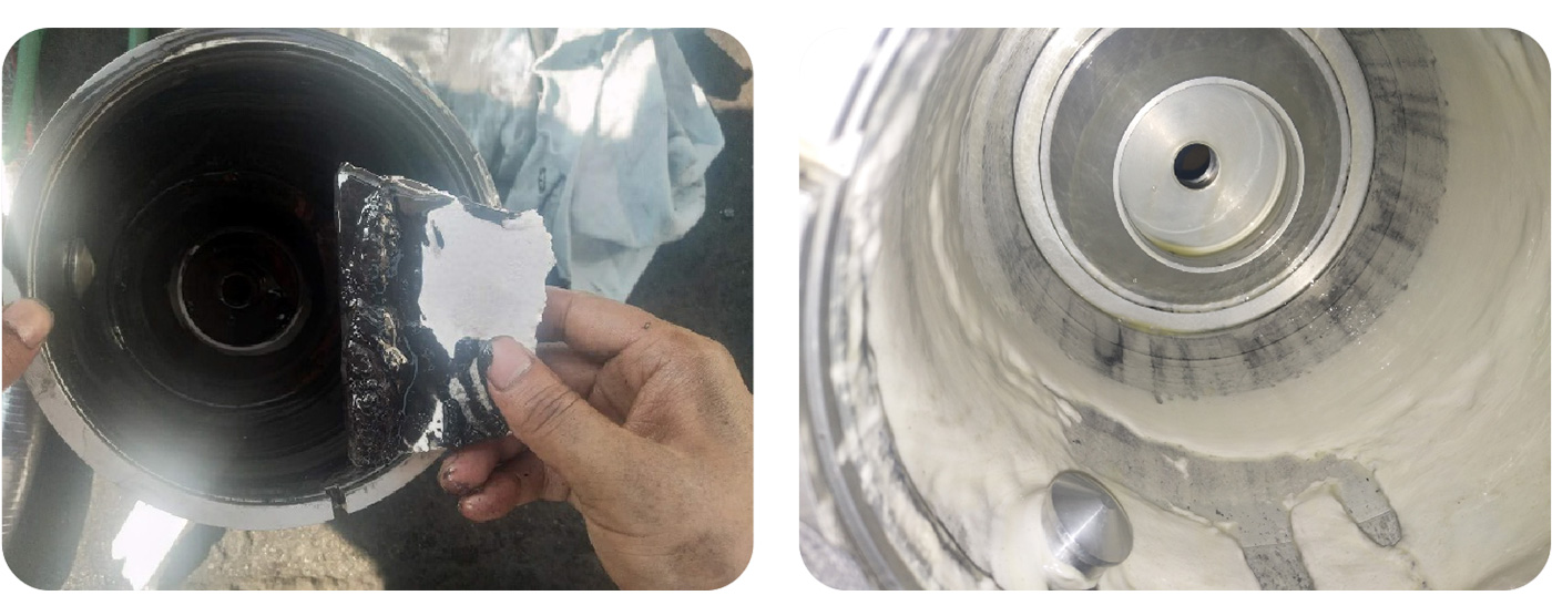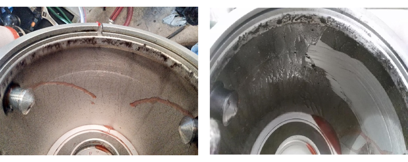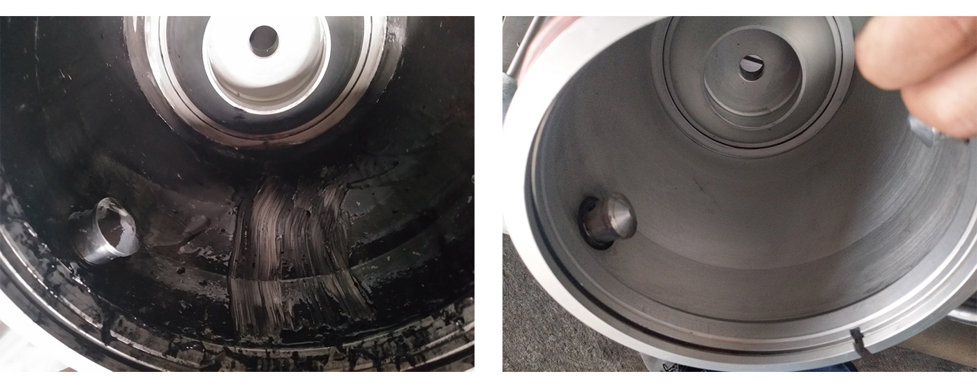 Separation of impurities on the inner wall of the drum (before cleaning)Separation of impurities on the inner wall of the drum (after cleaning)